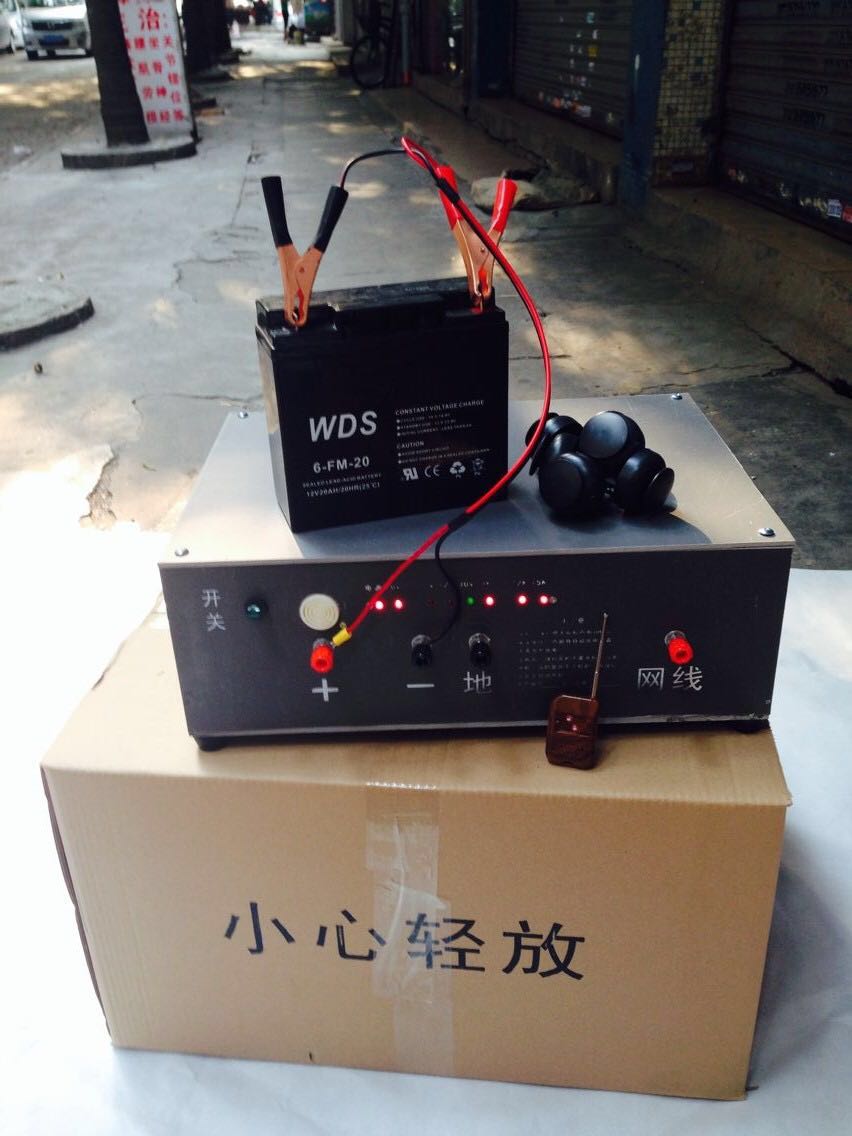 輸出電壓:15萬伏,規格:30*25*20cm,價格1200元。適合捕幾十斤野豬。適合在莊稼地、稻田、丘陵、平原、山區使用。帶遙控器,可遠程遙控自動放電。?